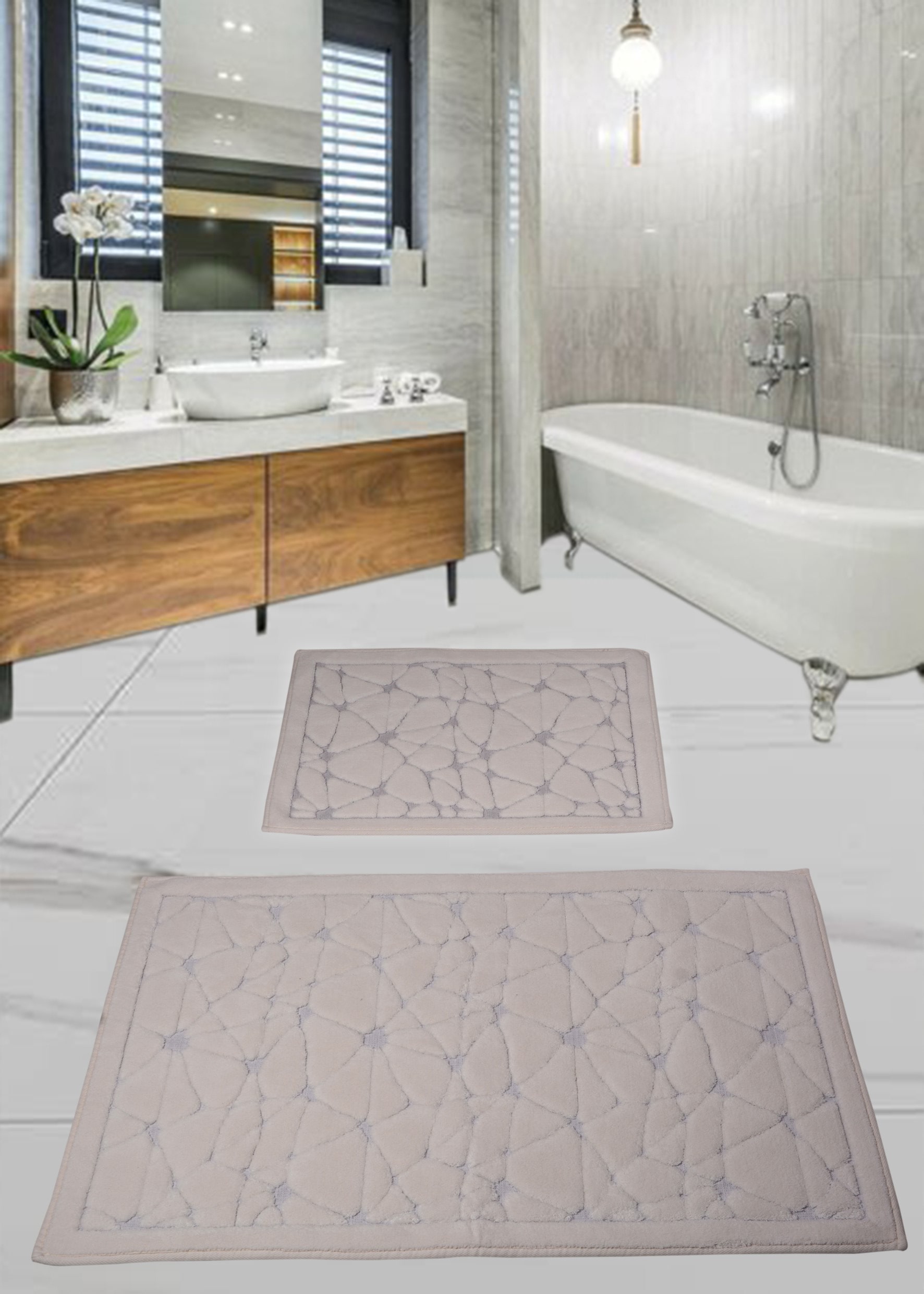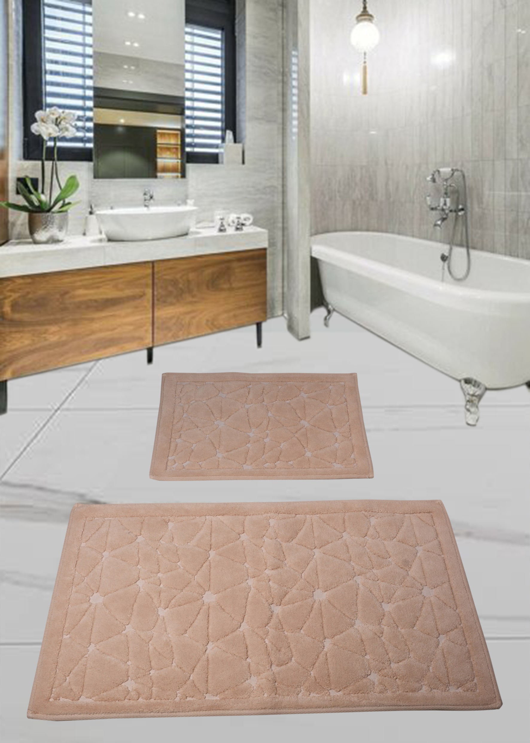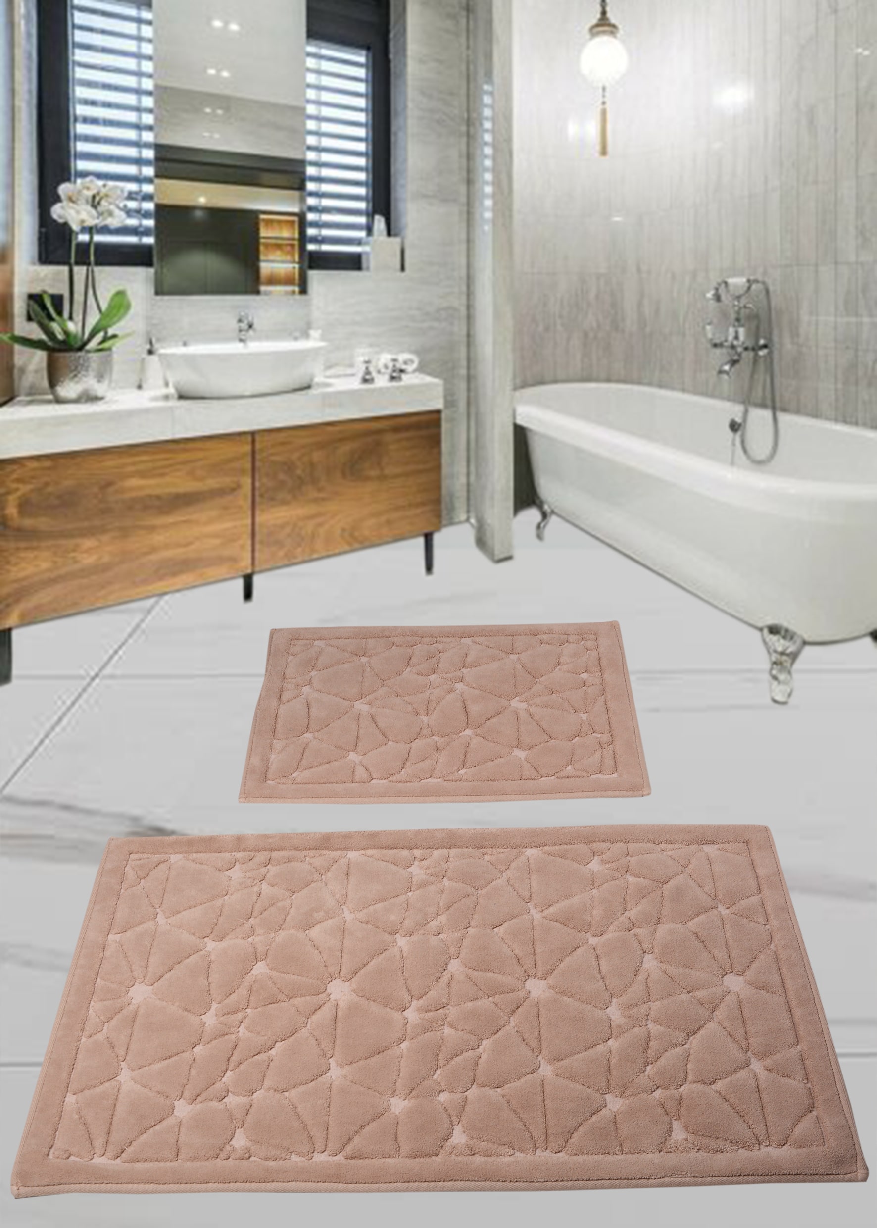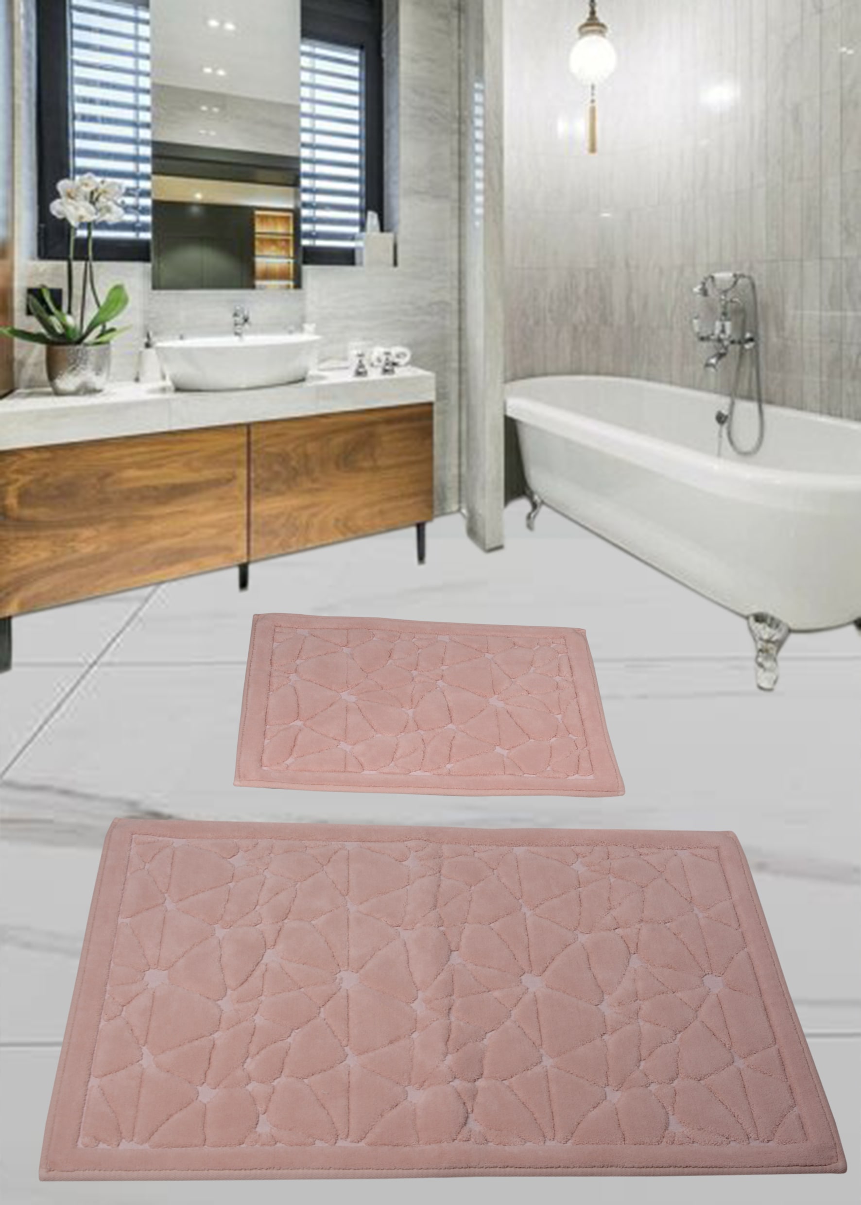 %100 doğal natural pamuk 1500 gr/m2 kaymaz Ebat: 60*100+50*60 cm Yıkama talimatına göre çamaşır makinasında yıkanabilir. 30 Derecede makinada yıkanabilir