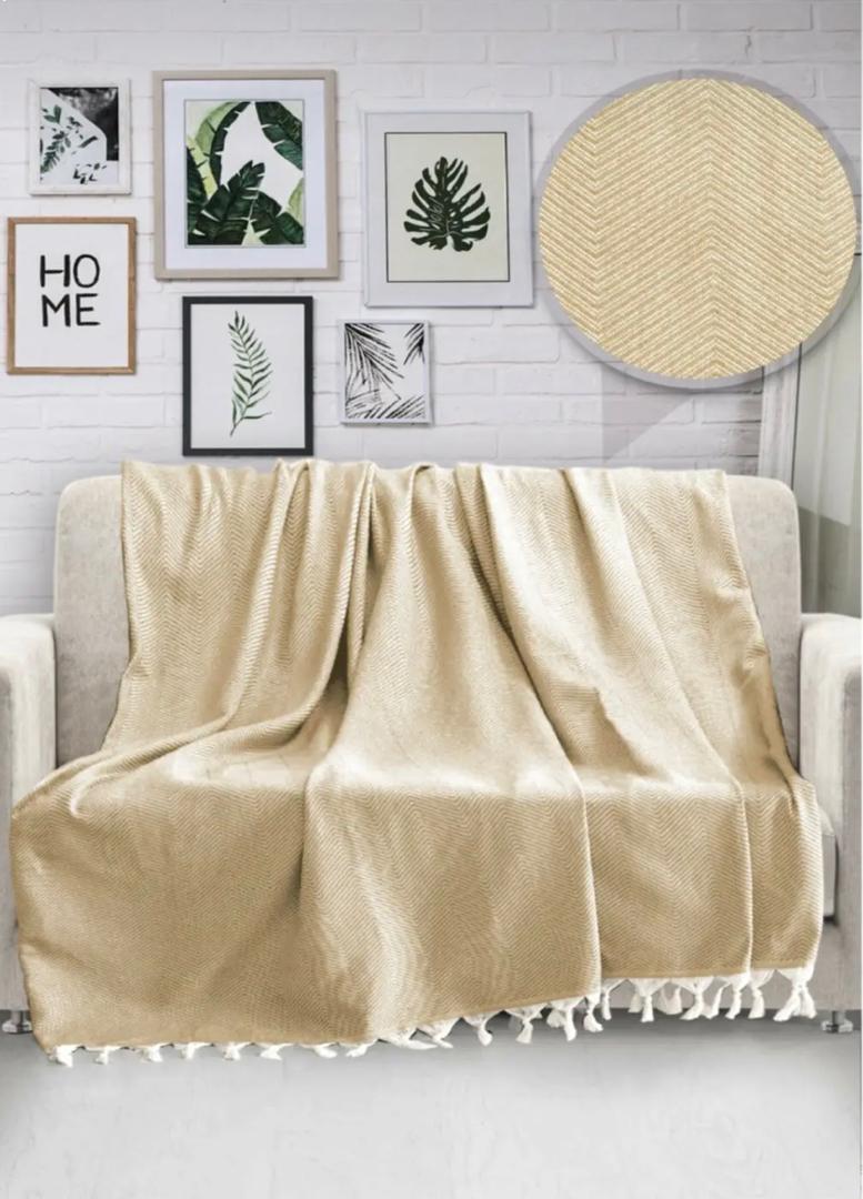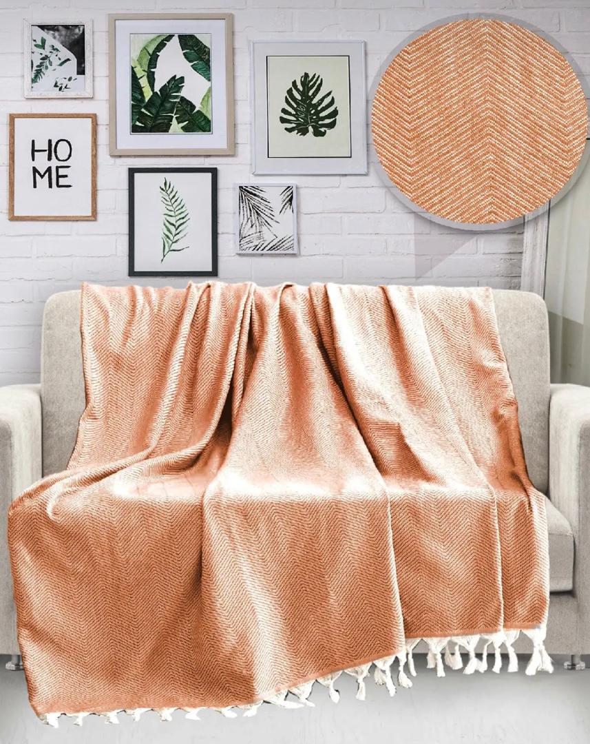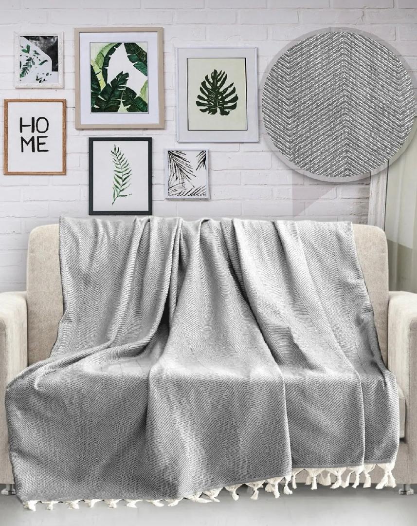 170x230 Saçaklı Koltuk örtüsü %100 pamuk 40 derecede Çamaşır ve elde yıkanabilir