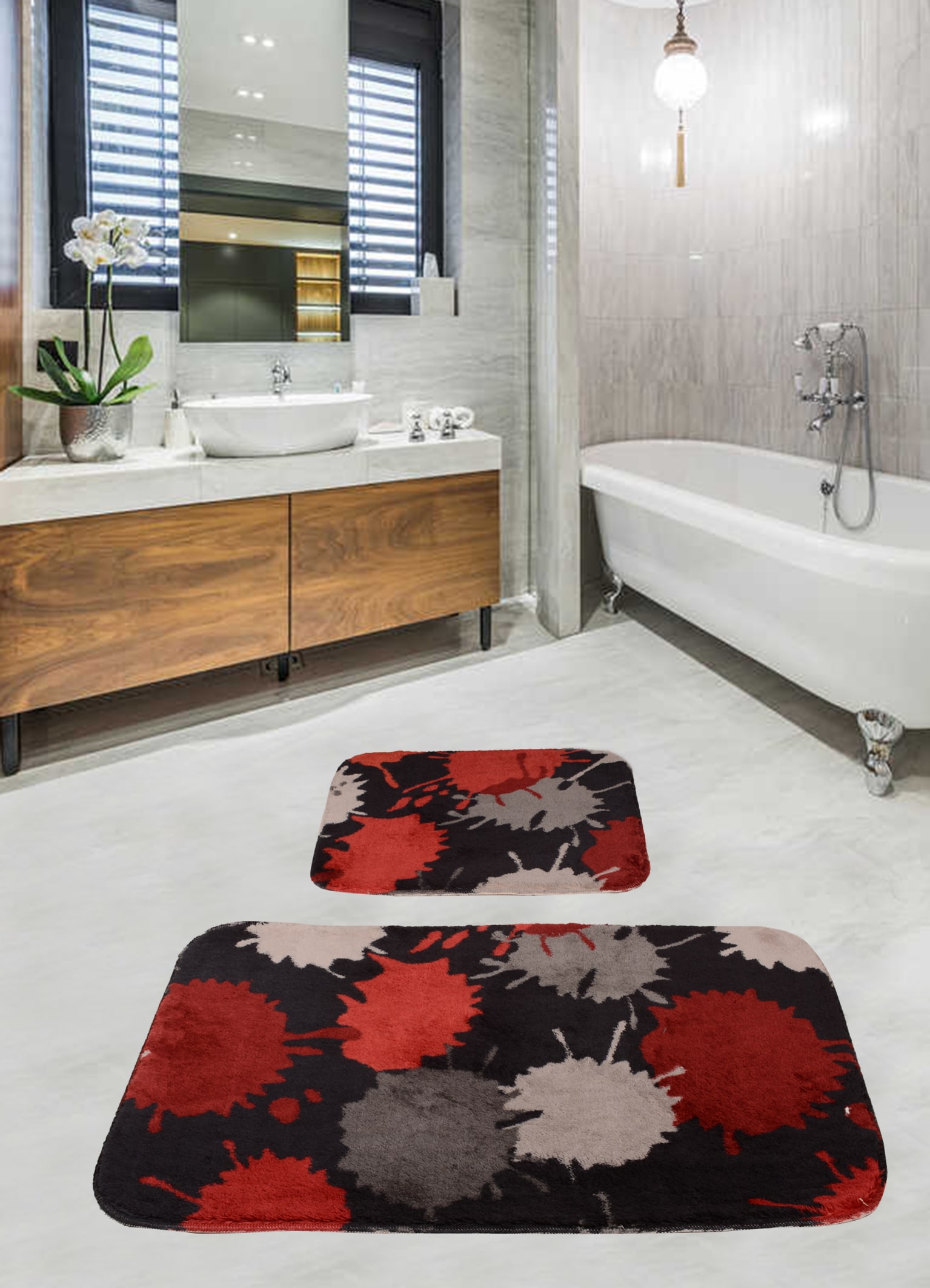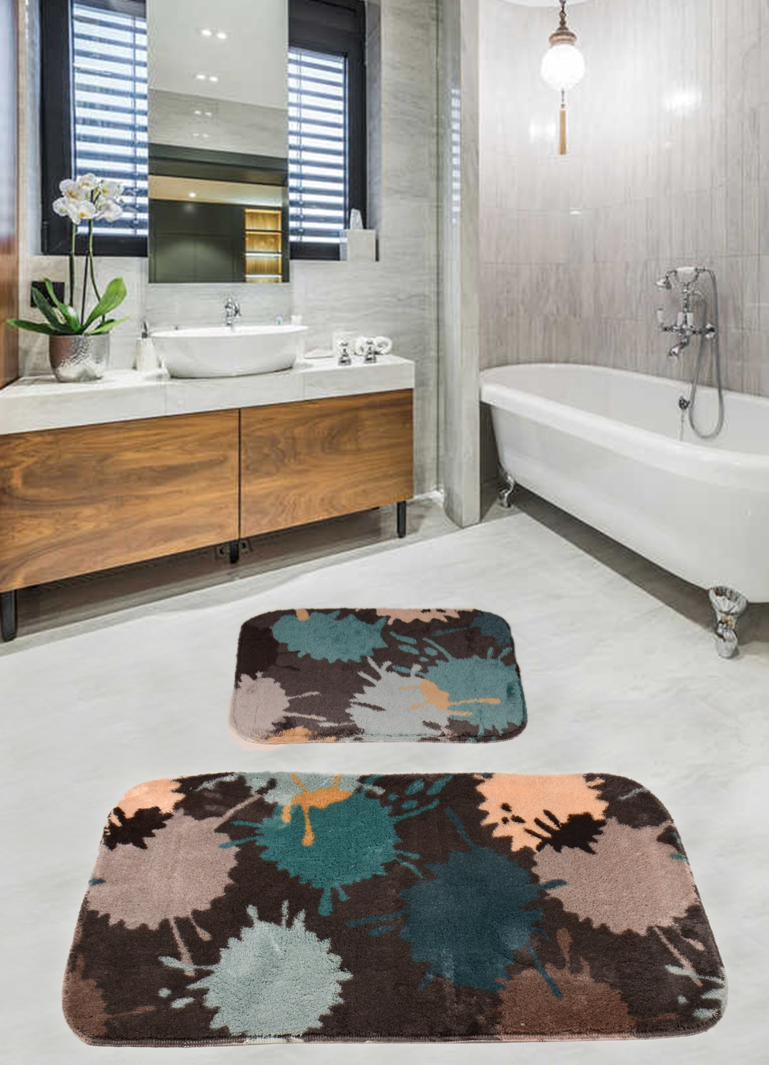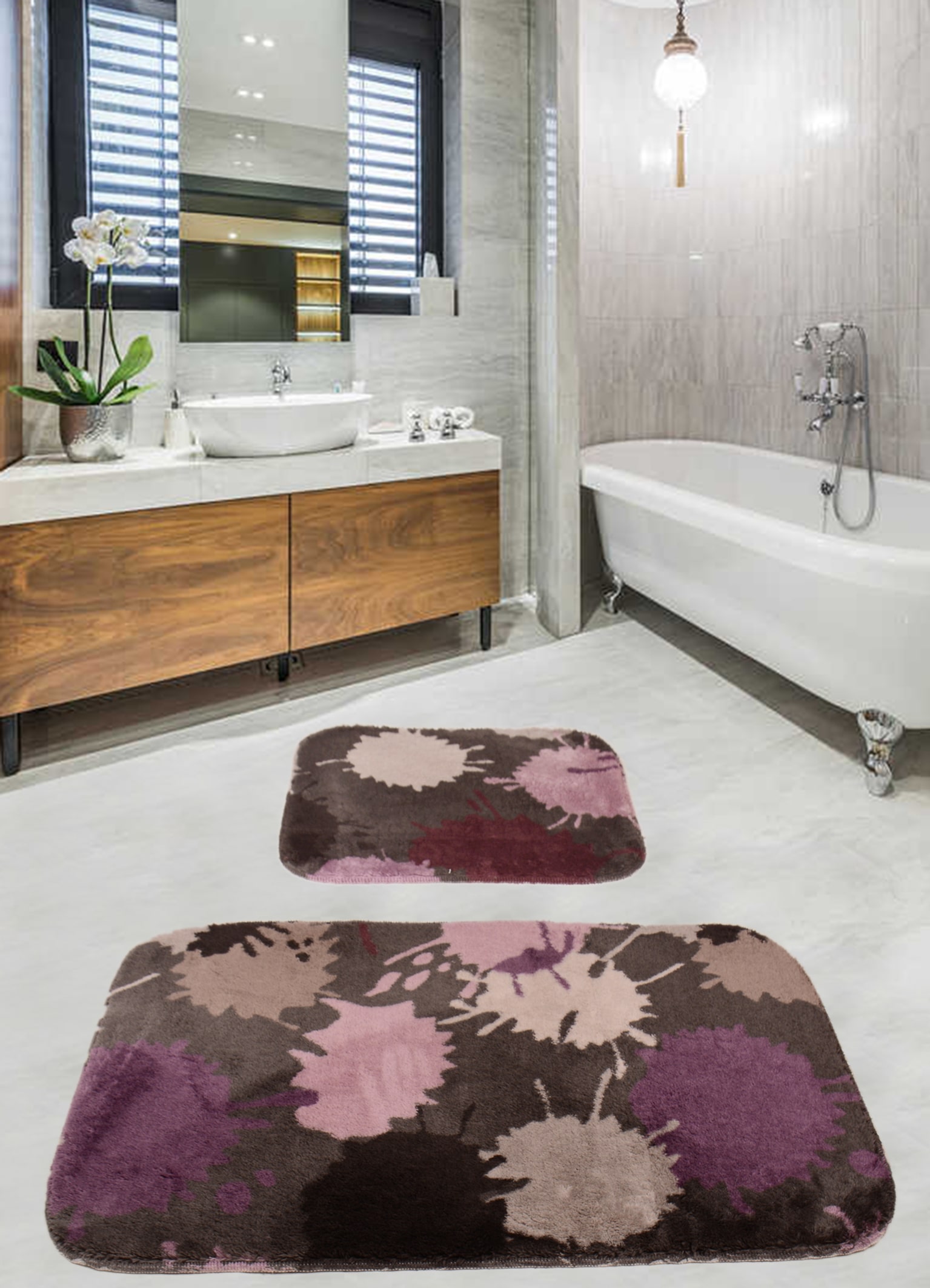 %100 Akrilik Kaydırmazlı Banyo Paspası - Ebat: 60*100+50*60 cm antibakteriyel 1550 gr/m2  makinada veya elde 30 derecede yıkanabilir