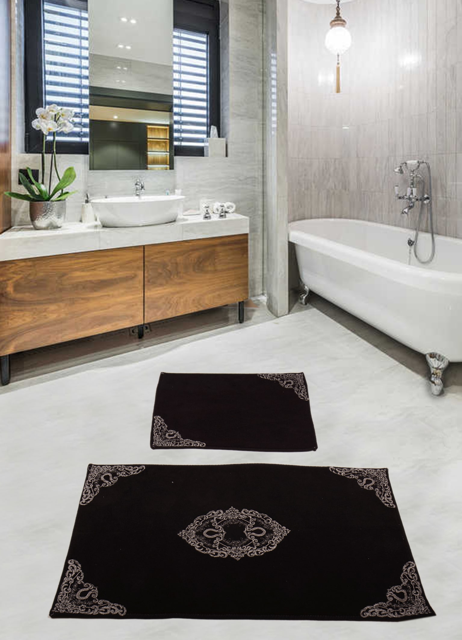 Dantelli Banyo paspası %100 doÄŸal natural pamuk 1500 gr/m2 kaymaz - Ebat: 60*100+50*60 cmÂ